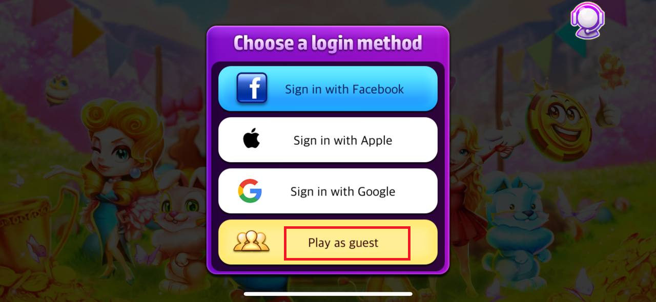 - Select your social linked method (Facebook/ Google/ Apple) to re-sign in. ※You must already be signed into your social account successfully.