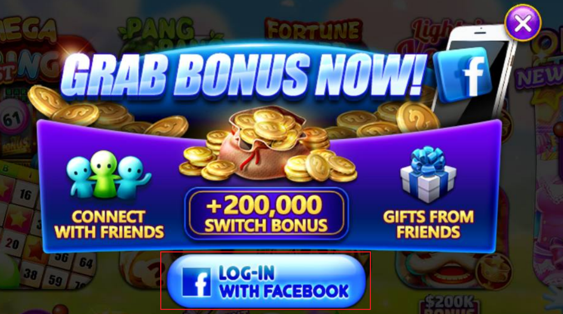 Once you've linked your Facebook account, navigate to the following page and click "LOG-IN WITH FACEBOOK". Instantly receive 200,000 free chips added to your balance.