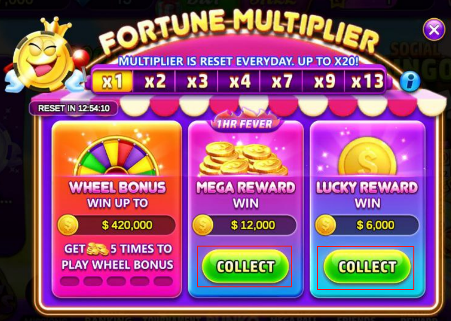 Log in to the game every day and spin the wheel to claim your daily and VIP bonuses. You can also win mega and lucky rewards. The timer resets for your next opportunity.