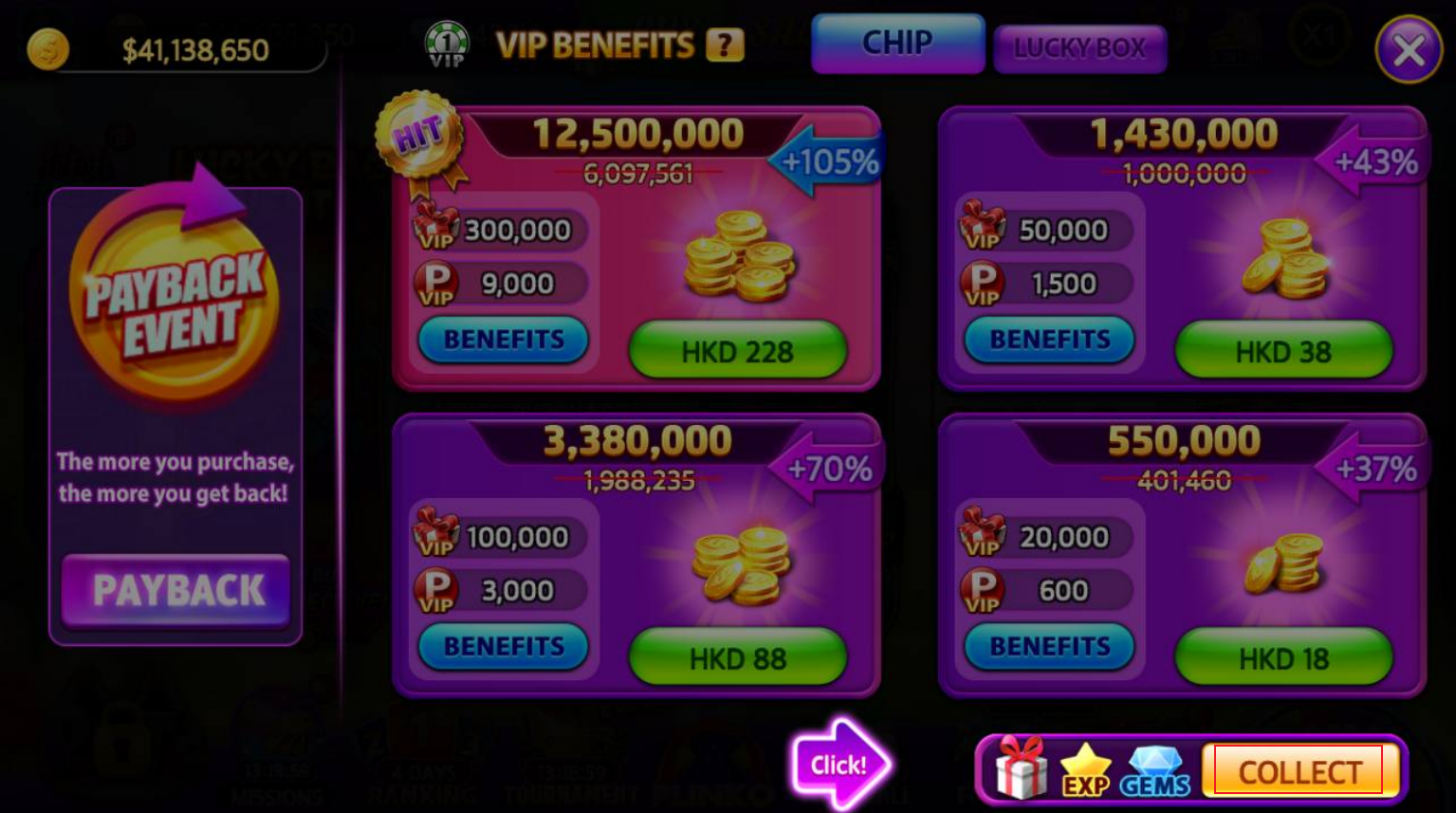 In Full House Casino, you can easily earn free coins or GEMs without spending a dime. Utilize these methods to earn free coins, GEMs, and EXP, enriching your gaming adventure. Here's a comprehensive guide on collecting free rewards: