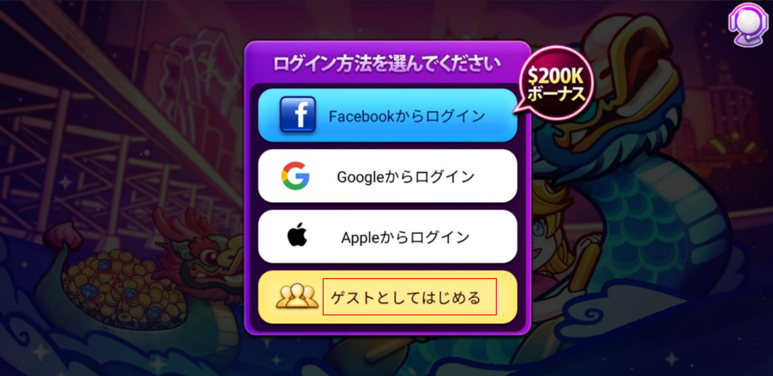 メインアカウントがゲストアカウントである場合は、まずはSNSアカウントとリンクさせて、連携したアカウントからログインしてください。
