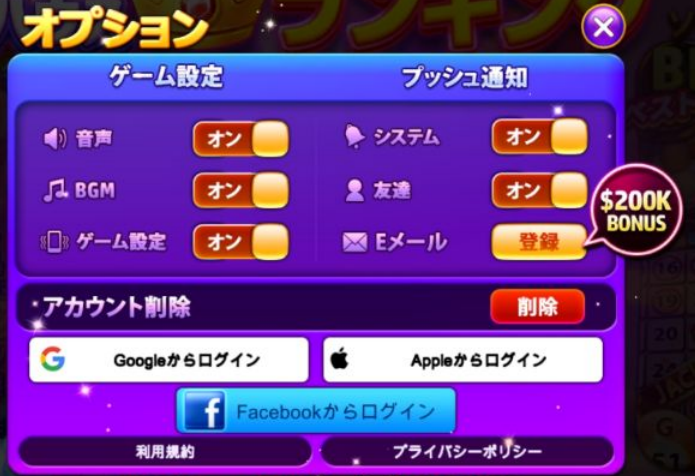 よく使用しているアカウントがリンク済みの連携アカウント(ユーザーIDがfb@/ google@/ apple@で始まる)でログインしている場合は、以下の手順に従って再度ログインしてください。