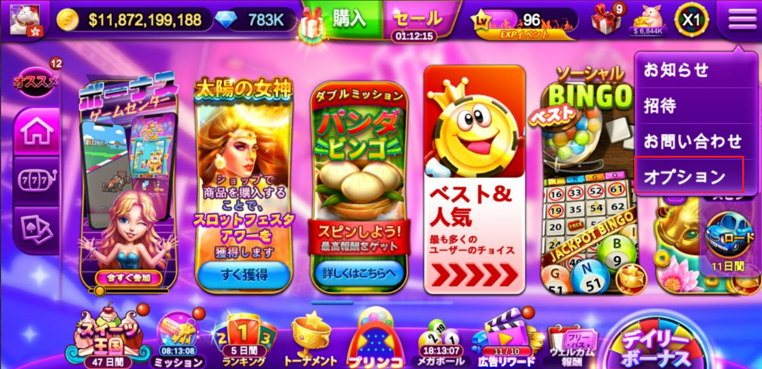 - メインロビーの右上隅にあるメニューを開く