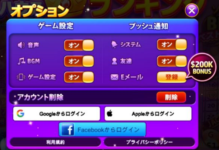 Facebook、Google、またはAppleのアカウントと連携させることで、ゲームの進行状況を保存できます。