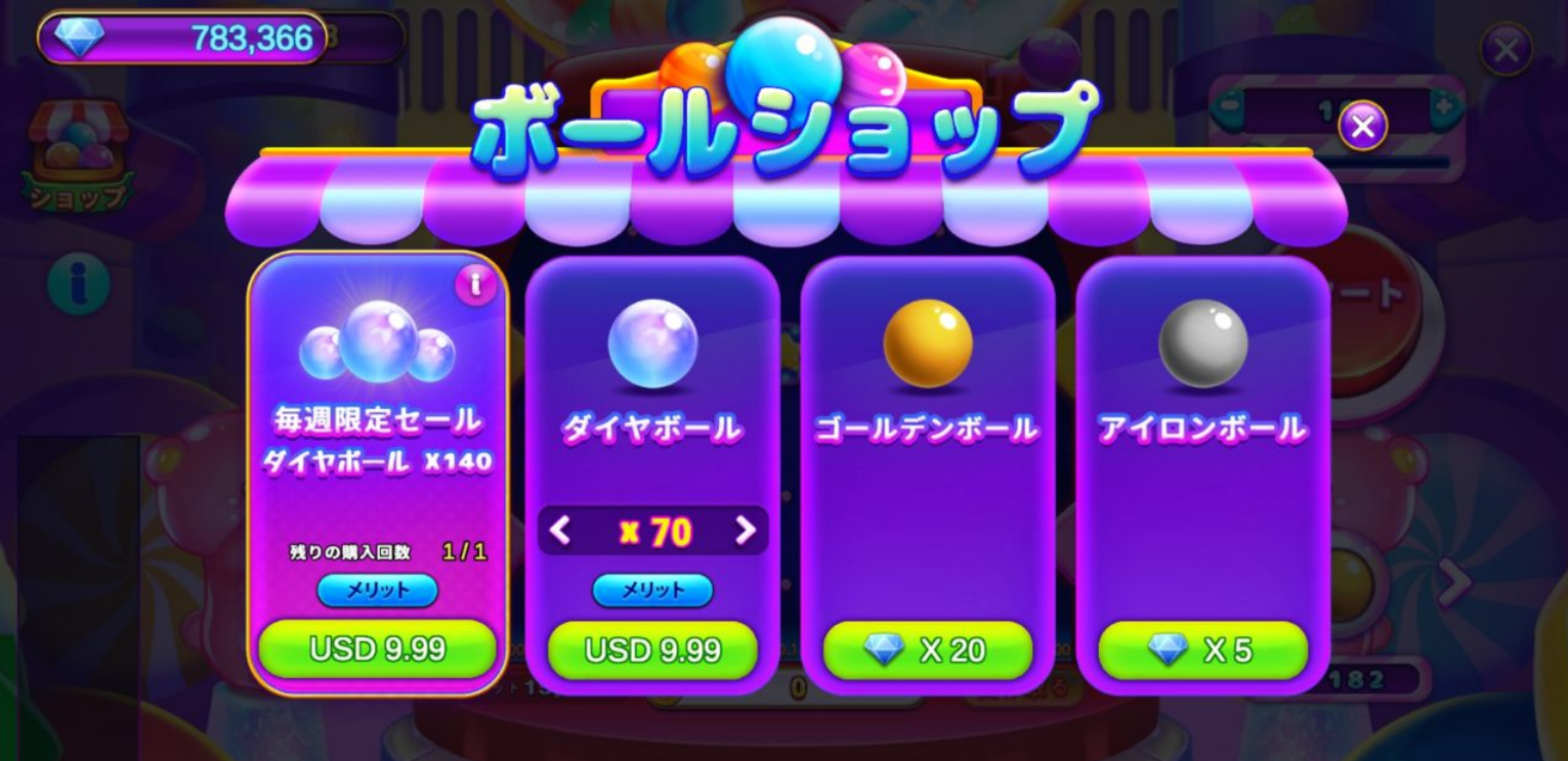 なお、「毎週限定セールダイヤボール x140」というお得オファーは、週に1回のみ購入でき、毎週土曜日にリセットされます。