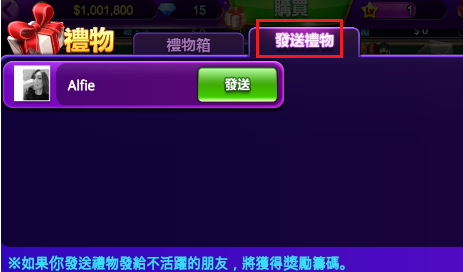 - 選擇你想要贈送禮物的好友,按下「發送」按鈕即可完成送禮。