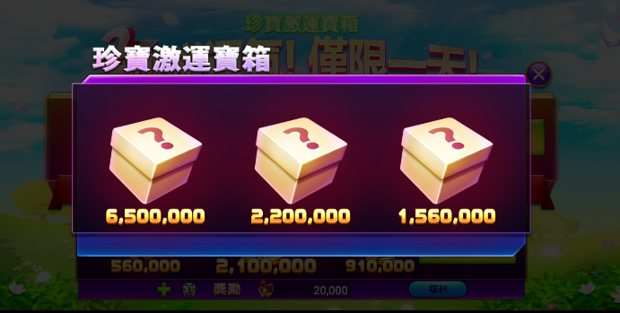 「珍寶激運寶箱」是我們為您準備的限時寶箱,讓您能盡情享受驚喜與抽獎的樂趣。寶箱提供了兩種方案,您可以選擇心儀的方案來獲得豐厚獎勵!